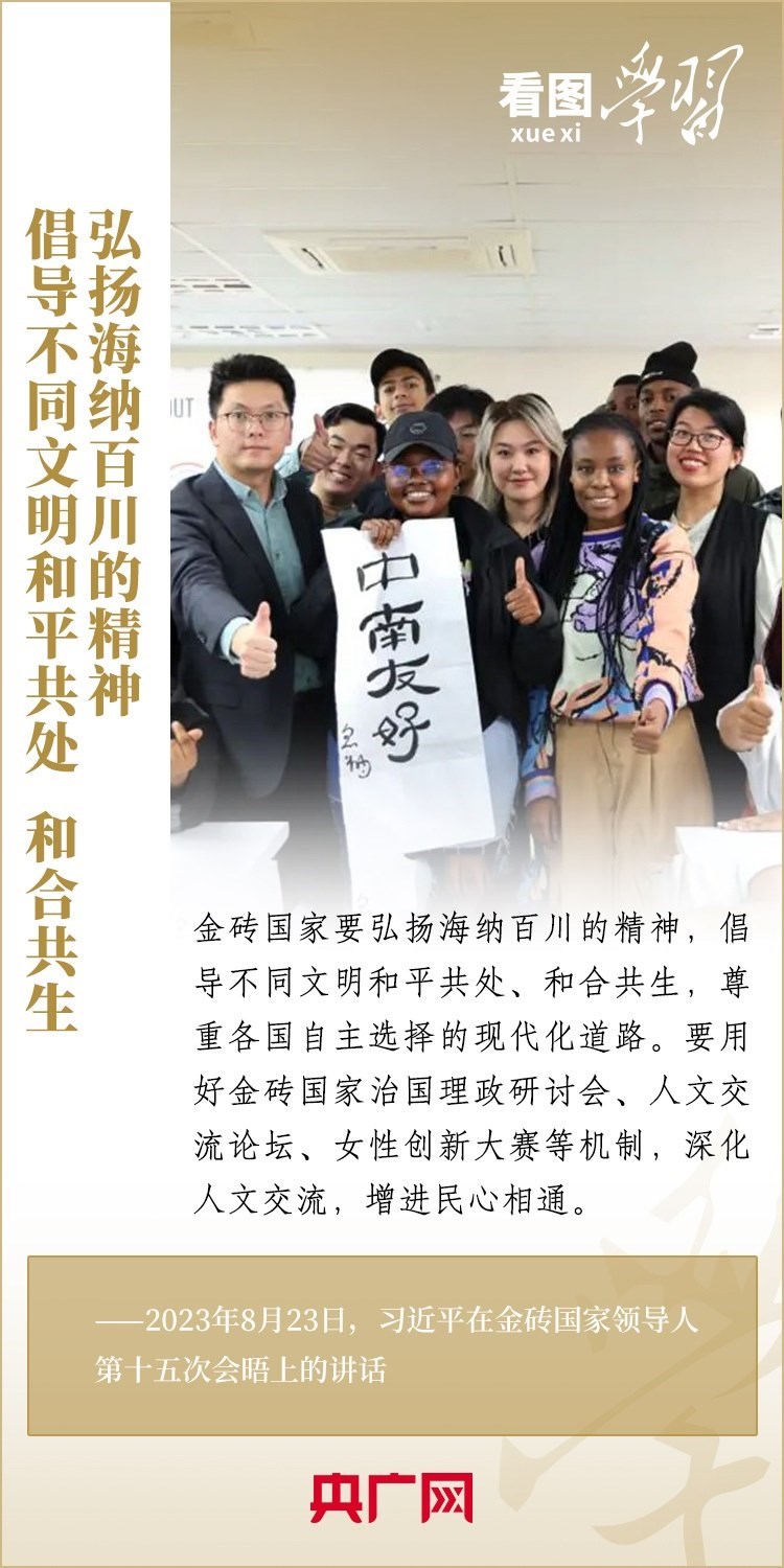 當(dāng)?shù)貢r間8月23日,習(xí)近平主席出席金磚國家領(lǐng)導(dǎo)人第十五次會晤并發(fā)表重要講話,強調(diào)金磚國家要秉持開放包容、合作共贏的金磚精神,以金磚責(zé)任應(yīng)對共同挑戰(zhàn),以金磚擔(dān)當(dāng)開創(chuàng)美好未來。一起來學(xué)習(xí)!