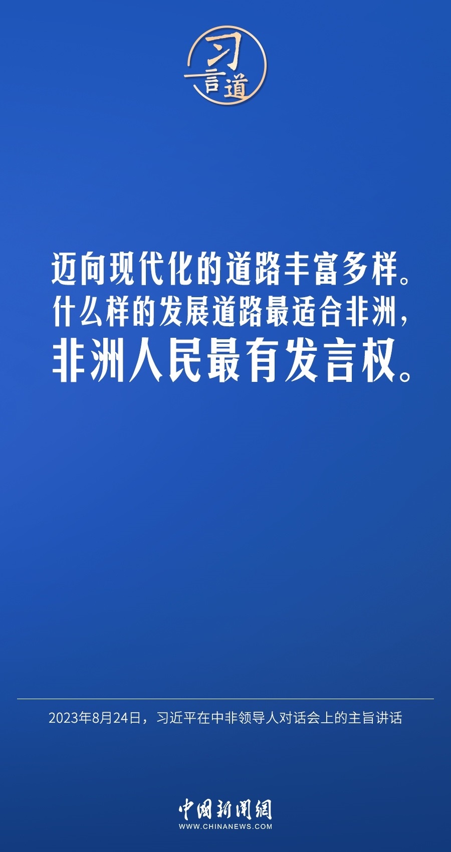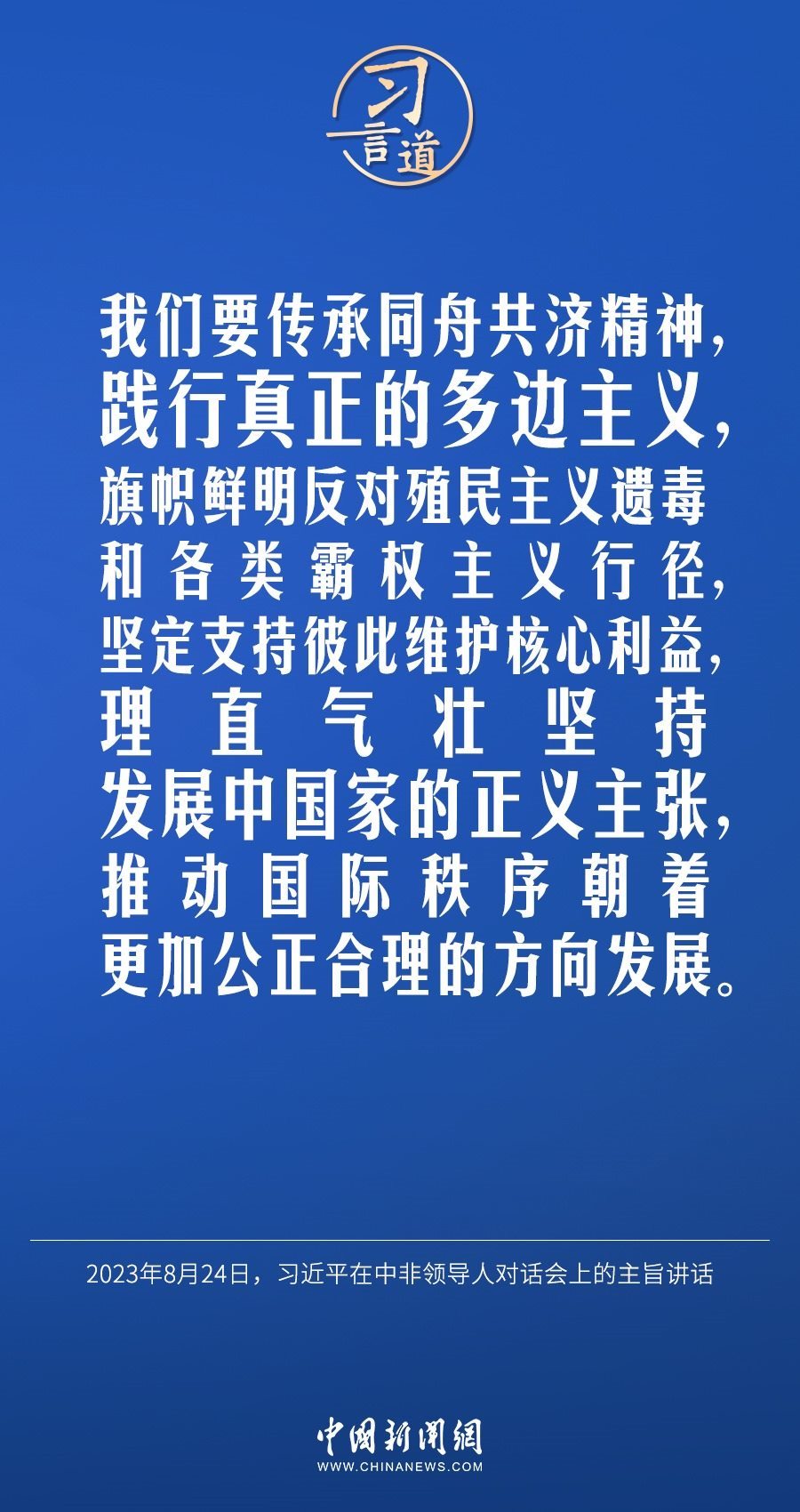 當(dāng)?shù)貢r(shí)間8月24日晚,國(guó)家主席習(xí)近平和南非總統(tǒng)拉馬福薩在約翰內(nèi)斯堡共同主持中非領(lǐng)導(dǎo)人對(duì)話會(huì)。習(xí)近平發(fā)表題為《攜手推進(jìn)現(xiàn)代化事業(yè) 共創(chuàng)中非美好未來(lái)》的主旨講話。習(xí)近平指出——