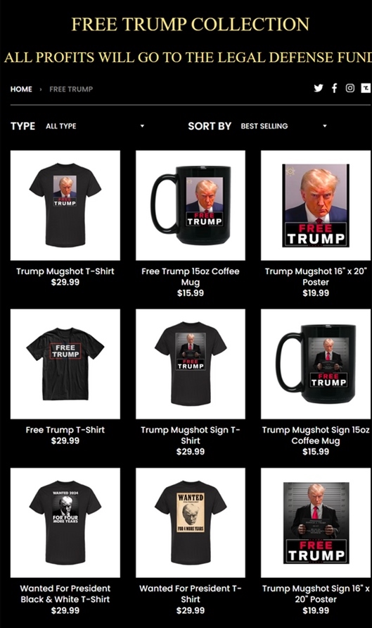 ·為競(jìng)選造勢(shì)?高調(diào)投案后,特朗普“監(jiān)獄大頭照”周邊產(chǎn)品開售。