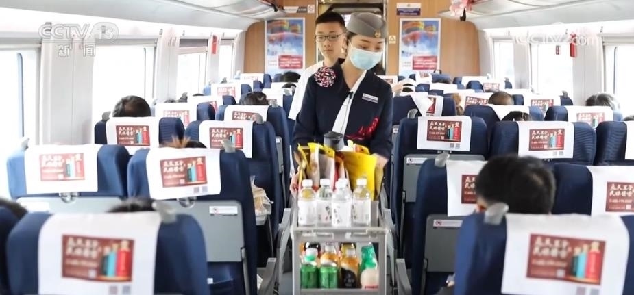 為了讓旅客在高鐵上有更多的美食選擇,高鐵移動(dòng)餐車,每1小時(shí)前往各車廂送餐1次,旅客在選購的同時(shí),也可以通過移動(dòng)餐車進(jìn)行訂餐服務(wù)。