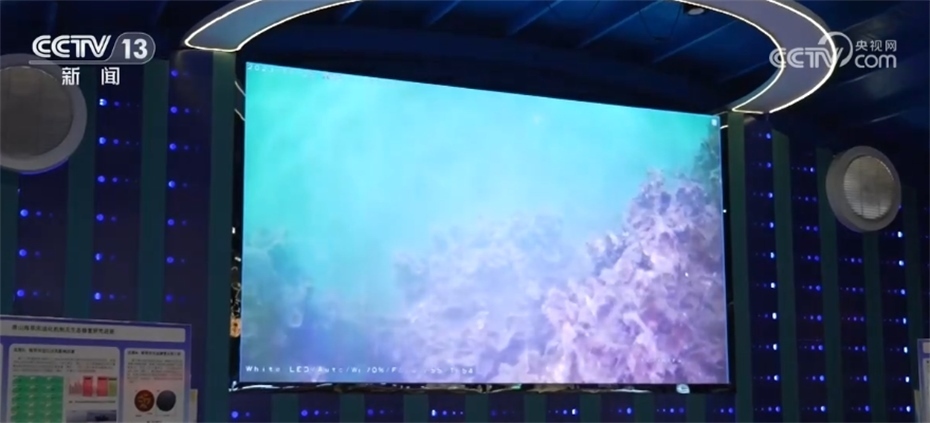 河北省近海生態(tài)修復(fù)工程技術(shù)研究中心負(fù)責(zé)人 張振海:現(xiàn)在看到的這個(gè)畫(huà)面,是我們“貝藻礁生態(tài)系統(tǒng)重構(gòu)技術(shù)”的實(shí)時(shí)景象,過(guò)去海底不是這樣的,海底整個(gè)是一片荒漠化的,在貝藻礁生態(tài)系統(tǒng)創(chuàng)新以后,海藻逐漸茂盛起來(lái),海洋生物物種增加了十幾種,海洋生物總量提高了四十倍以上。