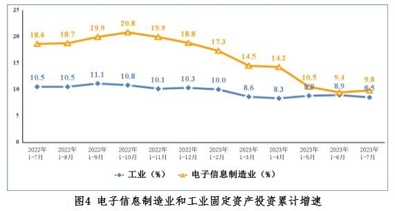 1—7月份,電子信息制造業(yè)固定資產(chǎn)投資同比增長9.8%,比同期工業(yè)投資增速高1.3個百分點,但比高技術(shù)制造業(yè)投資增速低1.7個百分點。