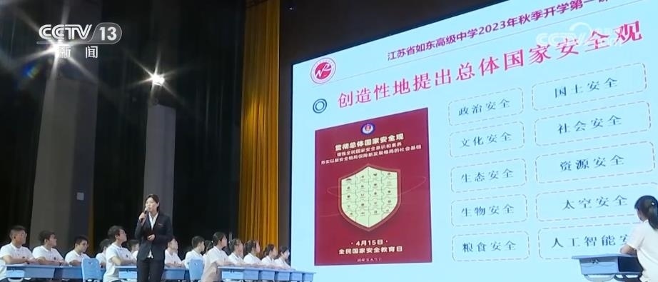新學(xué)期,江蘇如東高級中學(xué)800多名高一新生,集中上了一堂主題為“筑牢國家安全基石,自覺維護國家安全”的思政課。通過觀看視頻、現(xiàn)場問答、教師授課等方式,引導(dǎo)同學(xué)們樹立國家安全意識。