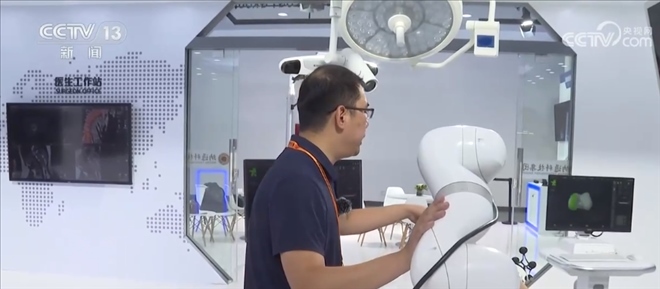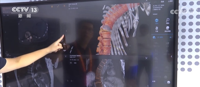 總臺記者 王豐:這里主要呈現(xiàn)的是一個(gè)智能手術(shù)室的系統(tǒng),這是一套幫助醫(yī)生進(jìn)行精準(zhǔn)手術(shù)計(jì)劃的設(shè)備,比如說我們可以利用一張X光片,一張CT或者一張核磁影像,就可以還原出一個(gè)3D的影像,醫(yī)生通過3D的建模,可以精準(zhǔn)地看到病灶所在的位置,包括他如何下刀,來精準(zhǔn)地制定手術(shù)計(jì)劃。