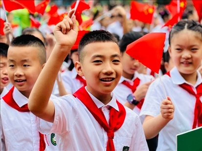 重慶樹人景瑞小學(xué)的孩子們參加以愛國為主題的“開學(xué)第一課”。(重慶樹人景瑞小學(xué)供圖)