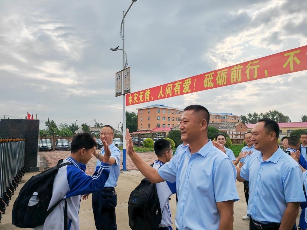 清晨,黑龍江省延壽縣第四中學(xué)的教職工排成兩列,迎接學(xué)生們返校。學(xué)生們背著書包陸陸續(xù)續(xù)進入校園,依次與教職工擊掌?!袄蠋熀谩薄八闹袣g迎你們”“開學(xué)快樂”等祝福此起彼伏。