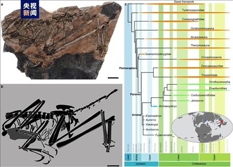 據(jù)介紹,鳥翼類是由恐龍演化到鳥類過程中的一個(gè)過渡物種,我國早期發(fā)現(xiàn)最早的鳥翼類是在“燕遼生物群”,大概距今1.6億年,之后,“熱河生物群”發(fā)現(xiàn)最早的原始鳥類化石是在距今1.3億年左右,兩者演化過程中大概有3000萬年的空白。福建省地質(zhì)調(diào)查研究院高級工程師徐立明表示,經(jīng)過研究確定奇異福建龍為距今1.48億年到1.5億年之間,因此奇異福建龍的發(fā)現(xiàn)彌補(bǔ)了鳥類起源在時(shí)間和空間上的部分空白,為研究鳥類起源與演化提供了重要信息。