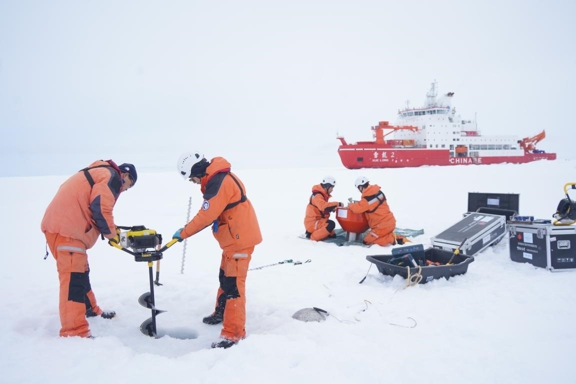 中國第13次北冰洋科學(xué)考察隊在北極點(diǎn)附近開展海冰綜合作業(yè)