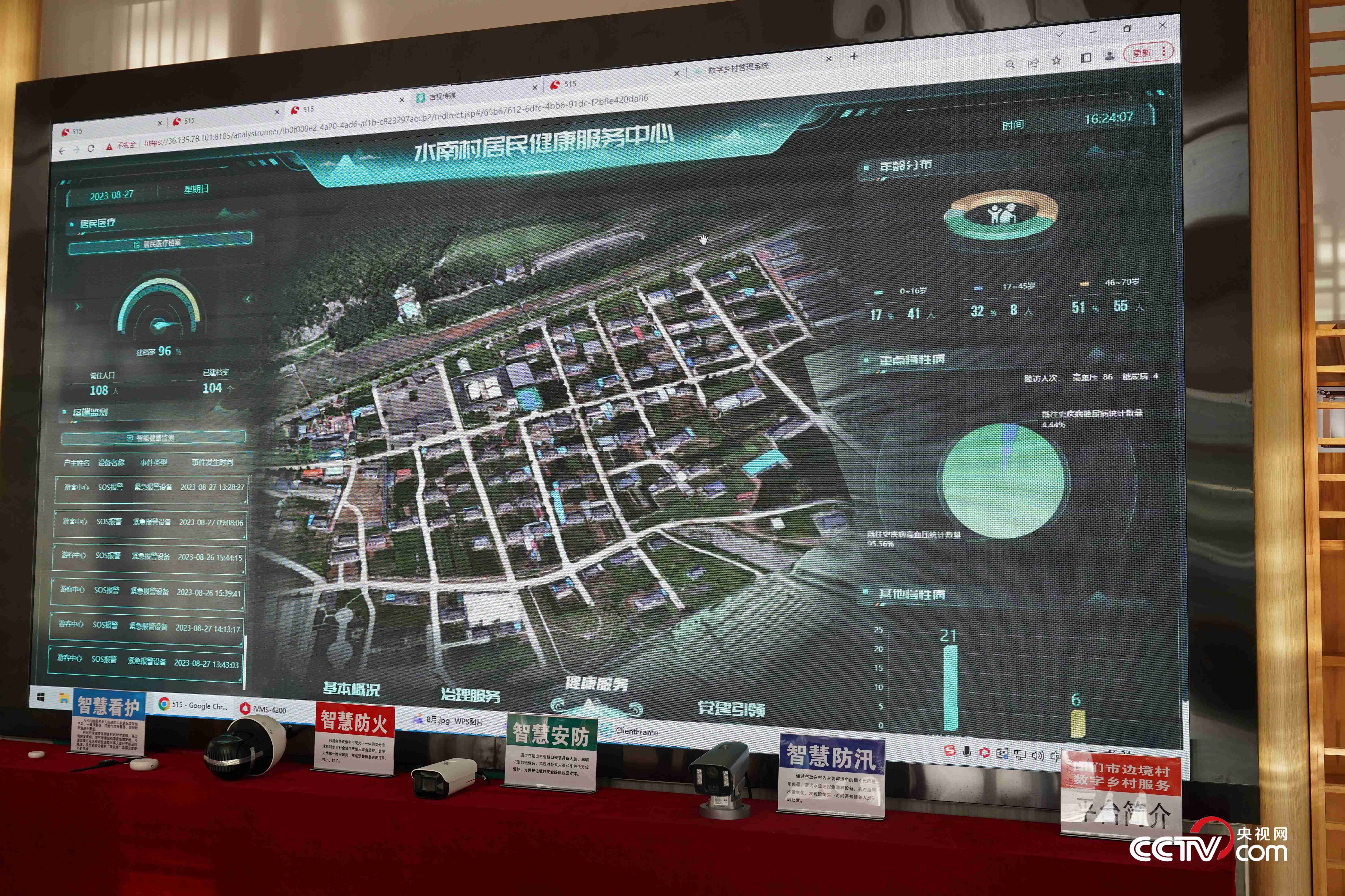水南村村委會副主任金國星介紹,2022年,水南村實施數字鄉(xiāng)村建設,將數字化手段與鄉(xiāng)村治理有效結合,聚焦醫(yī)療、養(yǎng)老、安防、防汛、防火、環(huán)境整治等重點領域,打造了一套貼近邊境鄉(xiāng)村實際的綜合化、智能化管理平臺。