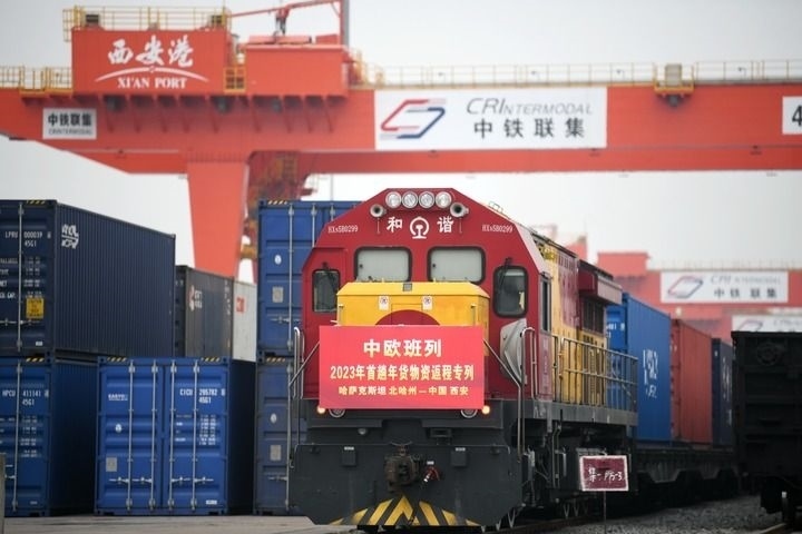 1月13日,滿(mǎn)載著來(lái)自哈薩克斯坦1300噸面粉的中歐班列抵達(dá)西安國(guó)際港站。這標(biāo)志著2023年首趟中歐班列年貨物資返程專(zhuān)列順利抵達(dá)西安,為即將到來(lái)的春節(jié)拉來(lái)了“洋年貨”。