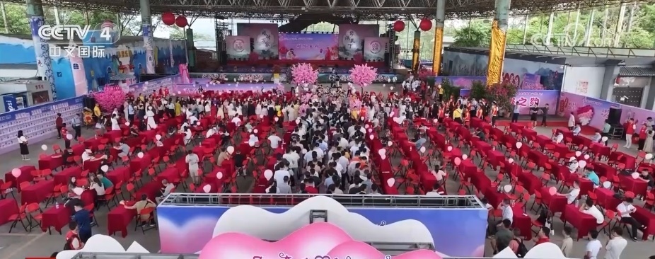 在廣東東莞,第35屆觀音山相親會吸引來自粵港澳大灣區(qū)近1000余名單身男女青年?;顒蝇F場通過“月老牽線”、紅娘支招、玫瑰傳情、宋風漢式婚禮展演等互動環(huán)節(jié)為廣大單身男女青年牽線搭橋,將浪漫指數拉滿。此外,宋風漢式婚禮展演的親迎之禮、卻扇之禮等宋代婚禮經典環(huán)節(jié)一一呈現,沉浸式體驗千年前古人的浪漫。