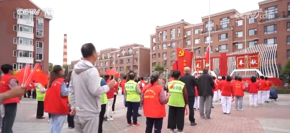 在吉林長春的一個(gè)居民小區(qū),這里正在進(jìn)行升旗前的訓(xùn)練。從2012年開始,小區(qū)每周都會(huì)舉行升旗儀式,最初的發(fā)起者是小區(qū)居民張秀英和她的老伴梁金華。