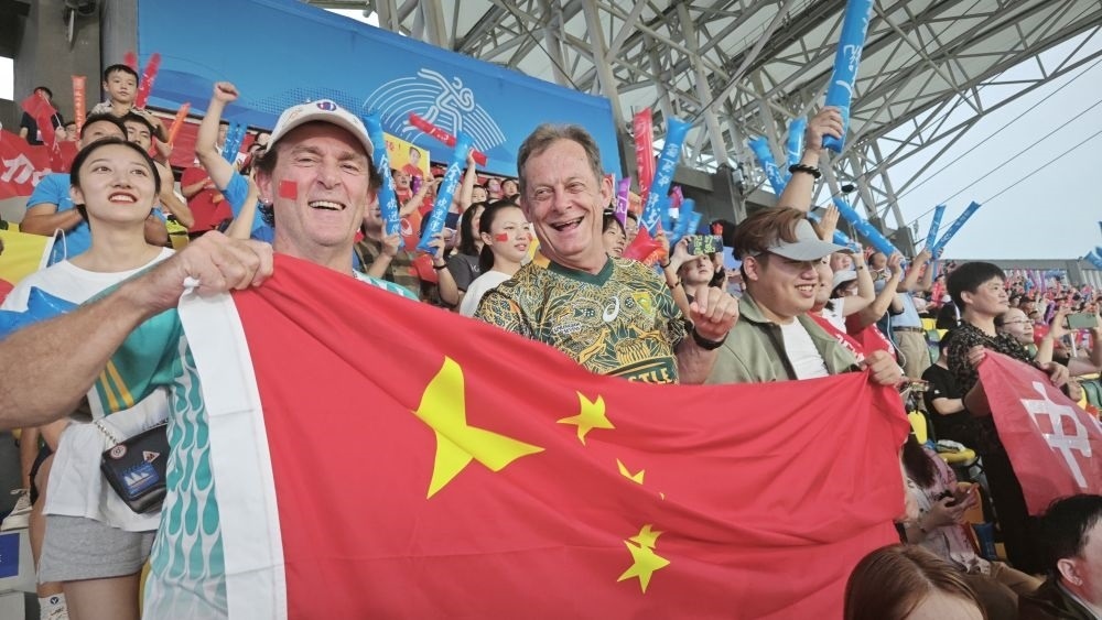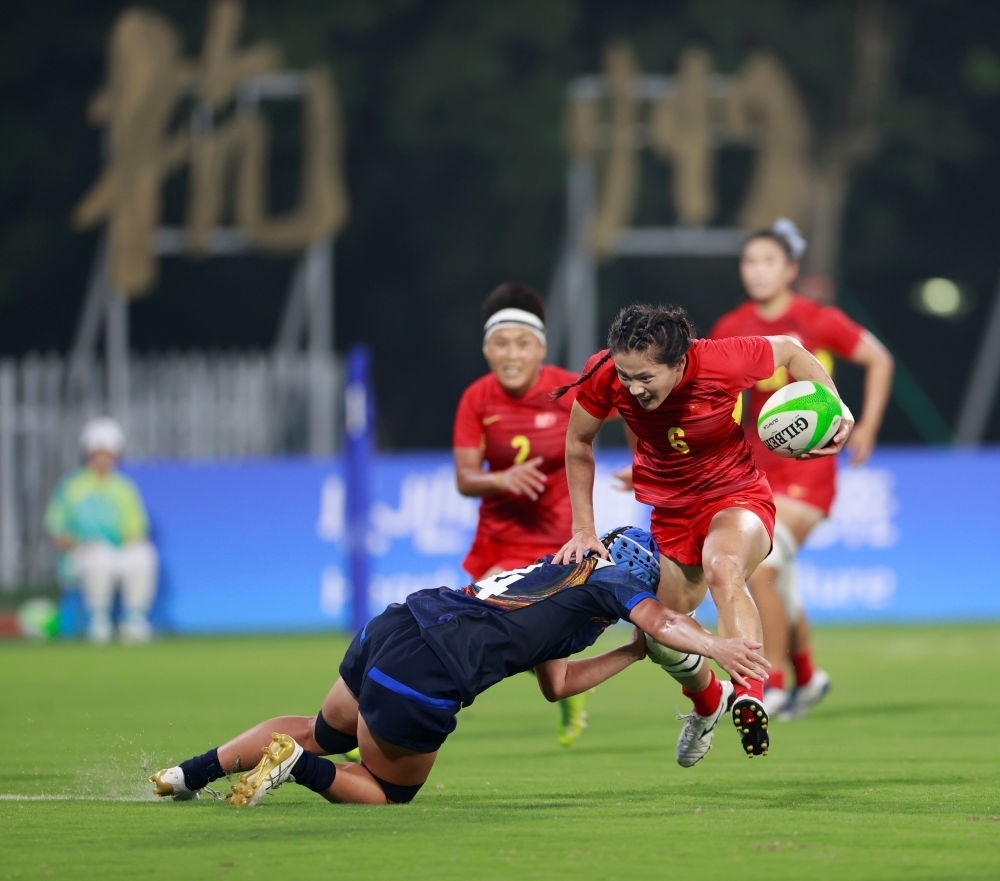 在杭州亞運(yùn)會(huì)的橄欖球賽場(chǎng)上