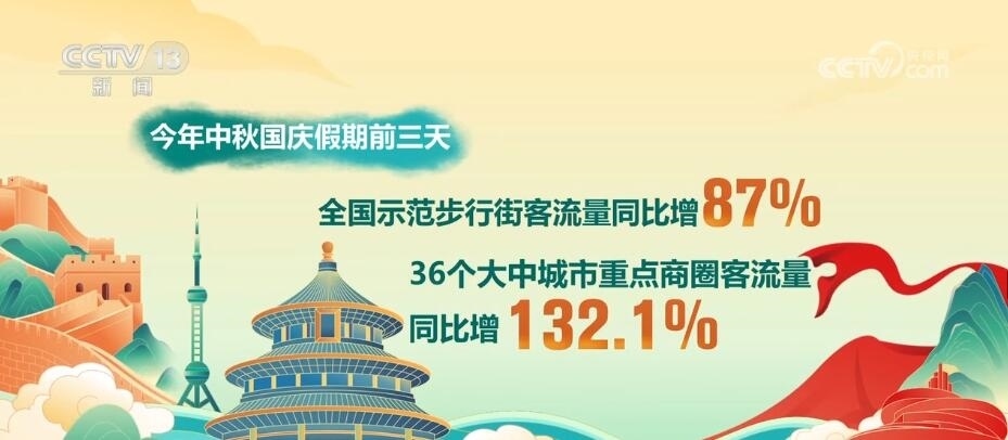 商務部數(shù)據(jù)顯示,假期前三天,重點商圈人氣紅火。全國示范步行街客流量同比增長87%,36個大中城市重點商圈客流量同比增長132.1%。