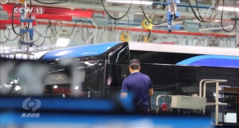 宇通客車股份有限公司海外高端車產品管理科科長楊普:“安全技術,還有輕量化技術,我們都做了比較多的突破,電池的Pack(電池包),還有電池BMS(電池管理系統(tǒng))的控制,它的效率,包括它的體積,還有它的重量,我們做了大量的研發(fā)跟突破?!?/p>