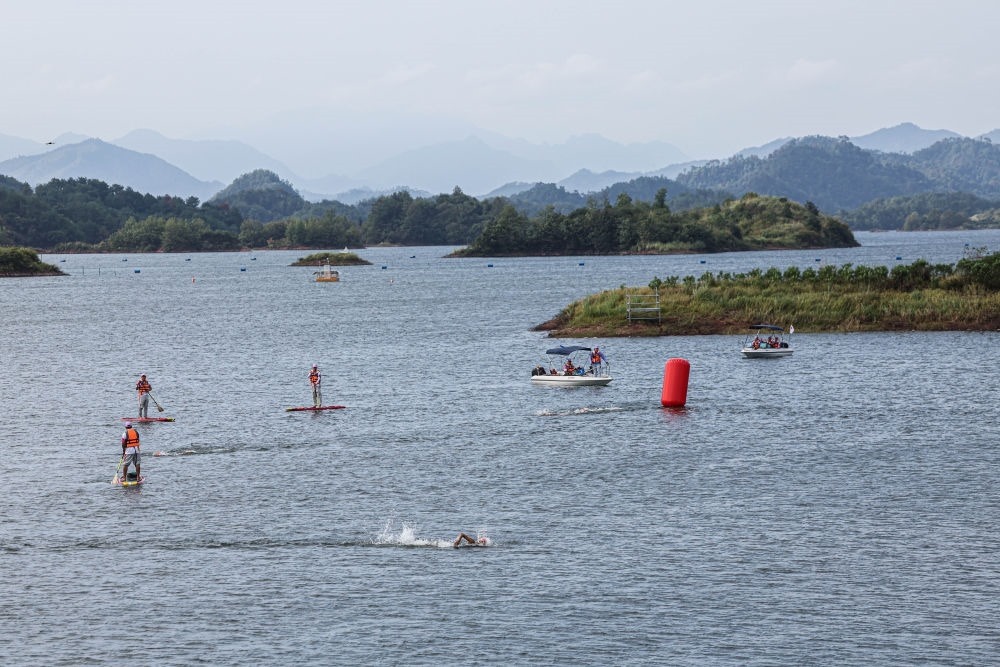 杭州主城區(qū)西南方約200公里,淳安縣千島湖秀水畔的界首鄉(xiāng),水域廣闊、港灣曲折,沿線騎行、徒步的游客絡繹不絕。杭州亞運會自行車、鐵人三項等比賽在這里如火如荼地展開。
