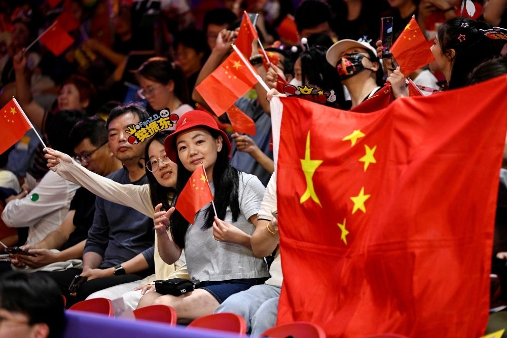 10月1日,觀眾在杭州亞運會乒乓球比賽現場為選手加油。新華社記者 王鵬 攝