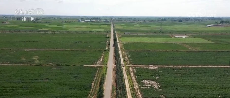 2017年,巴彥淖爾市規(guī)劃了484萬畝鹽堿化耕地“改鹽增草(飼)興牧”示范工程,拉開了全市改良鹽堿地的序幕。通過大規(guī)模土地整理,愛國村零散的土地被整合了起來?,F(xiàn)在行走在愛國村的田間地頭,遠看路相連、渠相通、溝配套。近看有新的發(fā)現(xiàn),在地下40公分的位置,鋪設了一層秸稈,鹽隨水來、隨水去。在水分向上蒸發(fā)的同時,能保證鹽分被阻攔在秸稈下面,這個被稱為“上膜下秸”技術。而對于重度鹽堿地,當?shù)卦诘叵?.8米的位置,每隔50公分鋪設了一些排水管道,能保證地下的水分隨時通過這些管道流到排水井里,最大程度地讓作物不受傷害,耕地質(zhì)量提高1—2個等級。