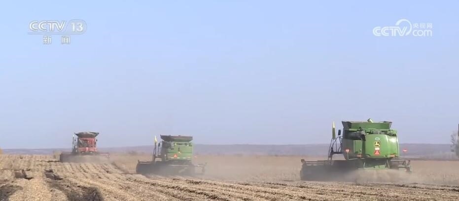 北大荒集團趙光農(nóng)場有限公司第九管理區(qū)副主任 周磊:半鏈軌過去之后,不破壞壟型,不誤車,能加快秋收的作業(yè)速度。我們預計在(10月)18日大豆全部收獲結束。