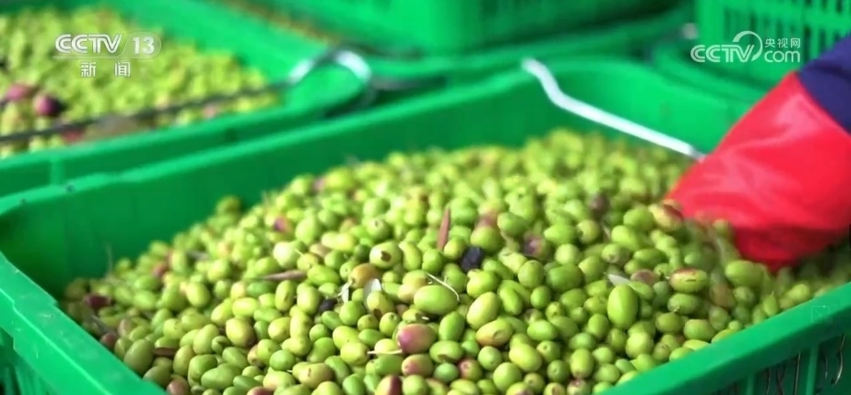 甘肅隴南武都區(qū)是我國油橄欖主產(chǎn)區(qū)。這里的60萬畝油橄欖現(xiàn)在進入采摘期,當?shù)亟M織人員加緊采摘,并及時進行精深加工。