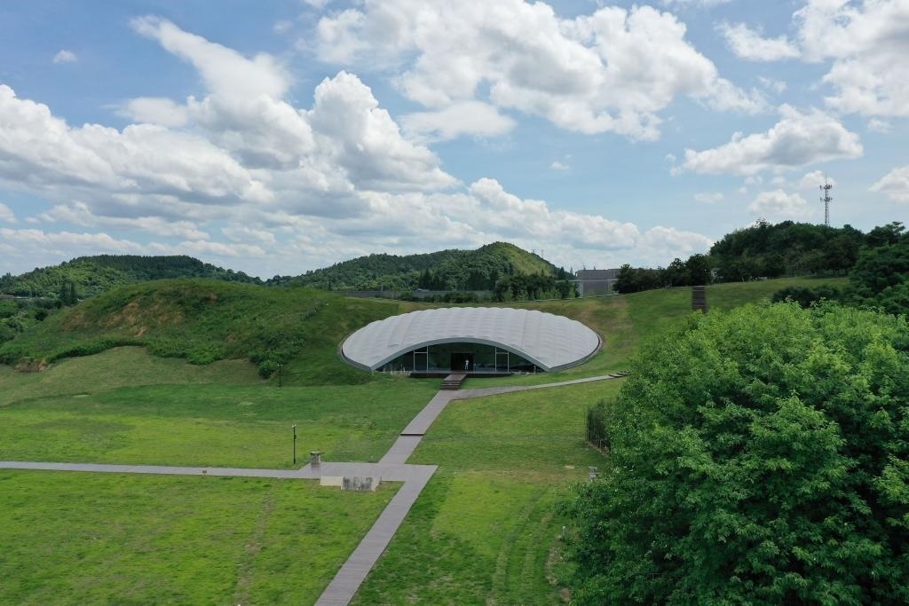 2022年7月6日拍攝的良渚古城遺址老虎嶺遺址公園(無人機(jī)照片)。新華社記者 黃宗治 攝