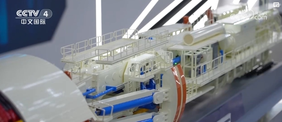 總臺(tái)記者 趙鶴:除了應(yīng)用在相對(duì)小型的產(chǎn)線上,在盾構(gòu)機(jī)、掘進(jìn)機(jī)這樣的國之重器上,也早已經(jīng)憑借物聯(lián)網(wǎng)技術(shù)進(jìn)行了智能化的升級(jí)。從這臺(tái)等比例縮小的硬巖隧道掘進(jìn)機(jī)的模型可以看到,在它的最前方是刀盤,用來進(jìn)行碾磨巖石作業(yè),在這樣一個(gè)和巖石產(chǎn)生激烈碰撞的地方也有傳感器的存在,來感知這些刀具的磨損轉(zhuǎn)速等數(shù)據(jù)信息。