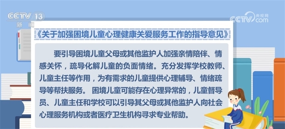 央視網(wǎng)消息:近日,民政部等五部門(mén)聯(lián)合印發(fā)《關(guān)于加強(qiáng)困境兒童心理健康關(guān)愛(ài)服務(wù)工作的指導(dǎo)意見(jiàn)》,通過(guò)加強(qiáng)心理健康教育、開(kāi)展心理健康監(jiān)測(cè)等措施,全面提升困境兒童心理健康水平和身心健康素質(zhì)。