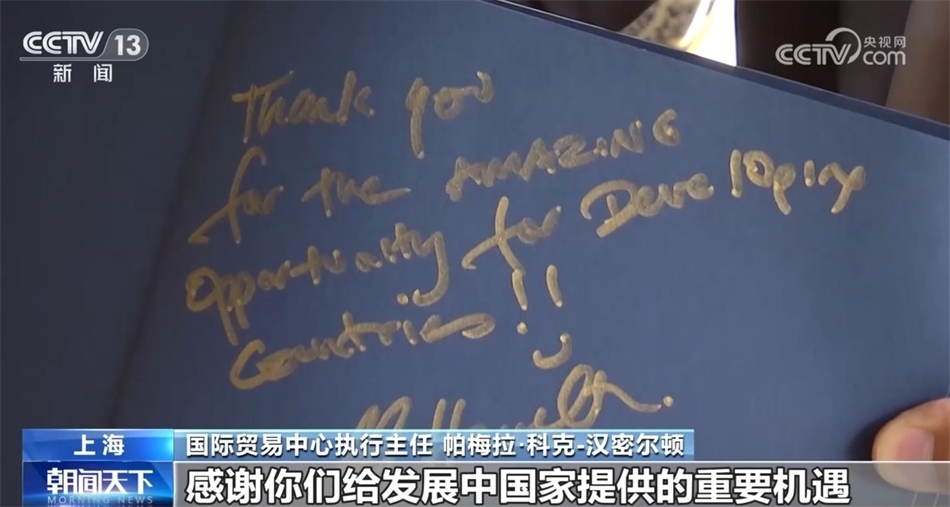 國際貿(mào)易中心執(zhí)行主任 帕梅拉·科克-漢密爾頓:進(jìn)博會最重要的是,它是一個無與倫比的進(jìn)口平臺。一個國家邀請人們來共享進(jìn)口機(jī)遇,這是創(chuàng)新之舉。對我們來說,這是雙贏(的機(jī)遇)。它為(各國企業(yè))進(jìn)入一個擁有巨大市場的國家提供了平臺,也為(各國及企業(yè))建立聯(lián)系網(wǎng)絡(luò),建立伙伴關(guān)系提供了重要的平臺,使各國能夠成為供應(yīng)鏈的一部分,更好地參與到全球經(jīng)濟(jì)合作之中。