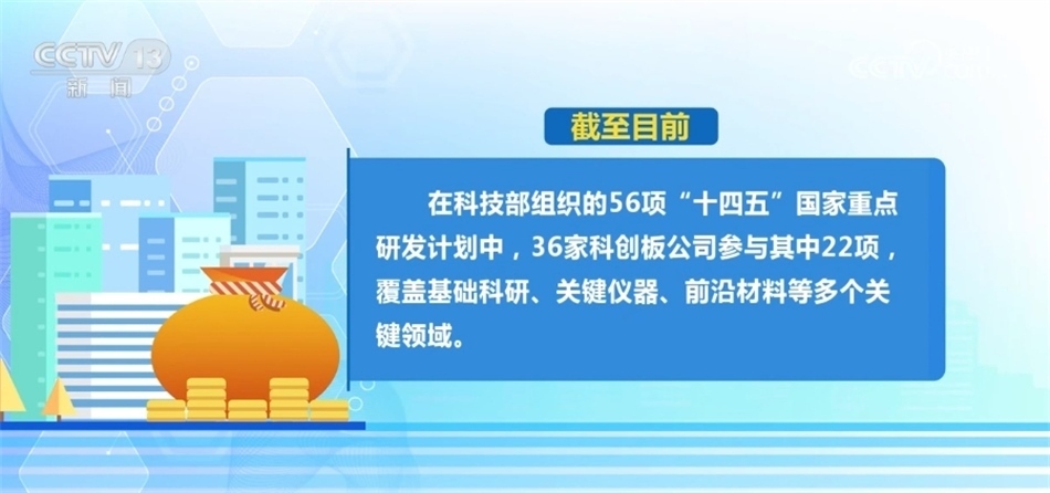 ?????? 截至目前,在科技部組織的56項“十四五”國家重點研發(fā)計劃中,36家科創(chuàng)板公司參與了其中22項,覆蓋了基礎(chǔ)科研、關(guān)鍵儀器、前沿材料等多個關(guān)鍵領(lǐng)域。