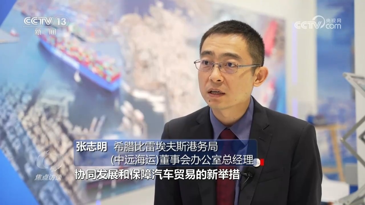 張志明:“第五屆進(jìn)博會(huì)上,比港與中遠(yuǎn)海運(yùn)集團(tuán)共同推出了協(xié)同發(fā)展和保障汽車(chē)貿(mào)易的新舉措。進(jìn)博會(huì)后,2022年11月,一艘多用途船停靠比港,卸下來(lái)的不是普通的貨物,而是用特制框架箱裝運(yùn)的中國(guó)汽車(chē),這些汽車(chē)在比港卸下后,通過(guò)陸路和水路分撥到歐洲其他地方。”