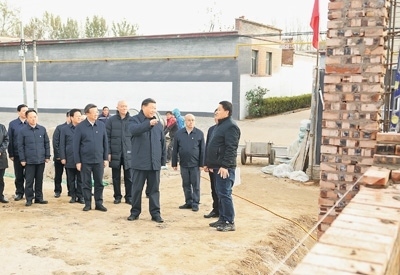 11月10日,中共中央總書記、國家主席、中央軍委主席習近平在北京、河北考察災后恢復重建工作。這是10日下午,習近平在河北保定涿州市刁窩鎮(zhèn)萬全莊村房屋重建施工現(xiàn)場考察。新華社記者 鞠 鵬攝