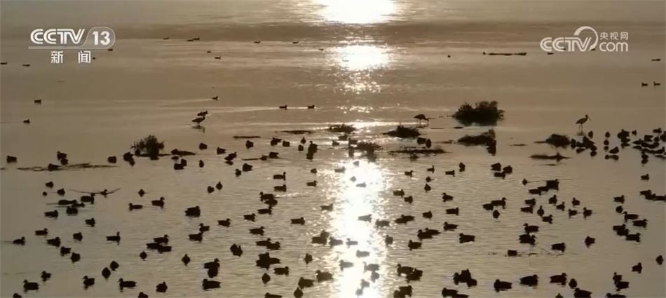 ?????? 眼下正是候鳥南遷的季節(jié),在內(nèi)蒙古鄂爾多斯市黃河流經(jīng)沿岸,聚集了大批南遷候鳥,其中有天鵝、蒼鷺、赤麻鴨、綠頭鴨等10多個(gè)種類,它們或是在水中和岸上悠然地休憩,或是聚精會(huì)神地飽餐一頓,或是振翅在空中翱翔。在落日余暉的映襯下,一派和諧靈動(dòng)的生態(tài)畫卷躍然眼前。