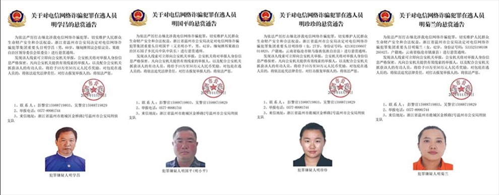 ·公安機(jī)關(guān)公開通緝緬北果敢自治區(qū)電信網(wǎng)絡(luò)詐騙犯罪集團(tuán)重要頭目明學(xué)昌、明國平、明菊蘭、明珍珍。