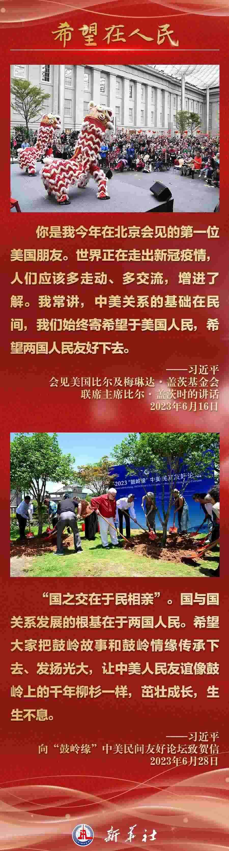 今年以來,從在京會(huì)見美國各界人士,到向“鼓嶺緣”中美民間友好論壇等活動(dòng)致賀信,再到復(fù)信美國華盛頓州“美中青少年學(xué)生交流協(xié)會(huì)”、史迪威將軍后人、飛虎隊(duì)老兵等友好人士,習(xí)近平主席同美國各界真摯互動(dòng),強(qiáng)調(diào)中美關(guān)系基礎(chǔ)在民間,希望在人民,未來在青年,活力在地方。