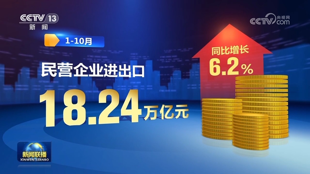 新動能帶動作用持續(xù)釋放,推動外貿(mào)領(lǐng)域積極因素累積增多。前三季度跨境電商進(jìn)出口額達(dá)1.7萬億元,同比增長14.4%,保持較快增長。貿(mào)易結(jié)構(gòu)優(yōu)化升級,1—10月,我國一般貿(mào)易進(jìn)出口增長1.8%,占我國外貿(mào)總值的64.9%,比去年同期提升1.1個百分點。民營企業(yè)進(jìn)出口18.24萬億元,同比增長6.2%,成為穩(wěn)外貿(mào)主力軍。