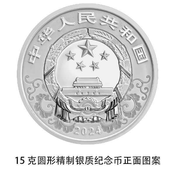 15克圓形銀質紀念幣為精制幣,含純銀15克,直徑33毫米,面額5元,成色99.9%,最大發(fā)行量300000枚。