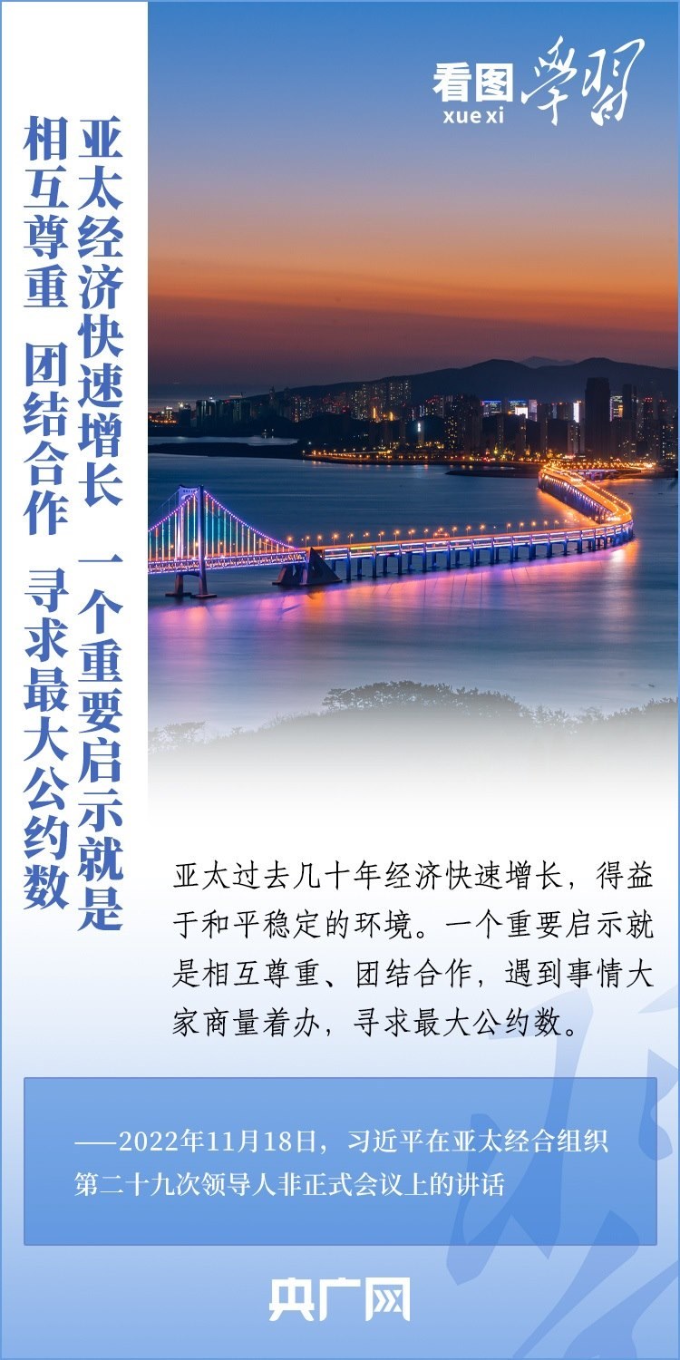 11月15日至17日,亞太經(jīng)合組織第三十次領導人非正式會議在美國舊金山舉行。作為全球經(jīng)濟規(guī)模最大、最具發(fā)展活力的地區(qū),亞太地區(qū)已發(fā)展為推動世界經(jīng)濟增長的一個重要引擎。2013年以來,在歷次亞太經(jīng)合組織領導人非正式會議上,習近平主席就促進亞太地區(qū)區(qū)域合作,推動構建開放包容、創(chuàng)新增長、互聯(lián)互通、合作共贏的亞太命運共同體作出一系列重要論述。一起來學習!