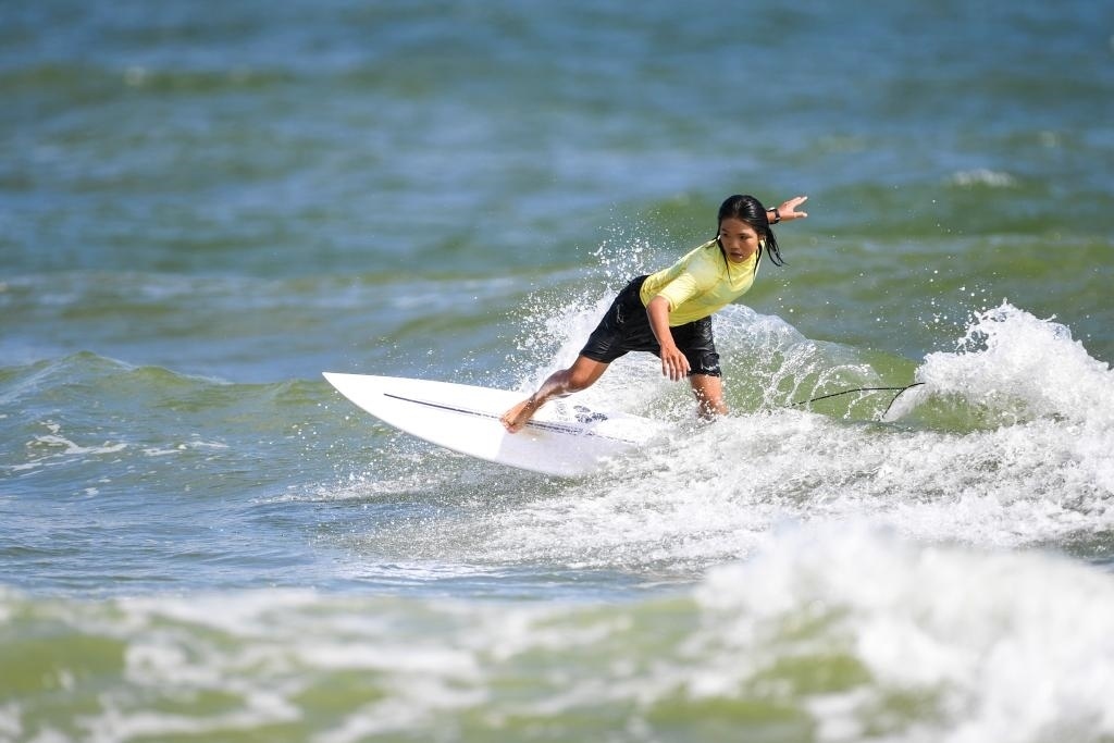 7月12日,第一屆全國學(xué)生(青年)運(yùn)動會沖浪項(xiàng)目女子短板決賽在廣西北海市舉行。新華社記者 曹祎銘 攝