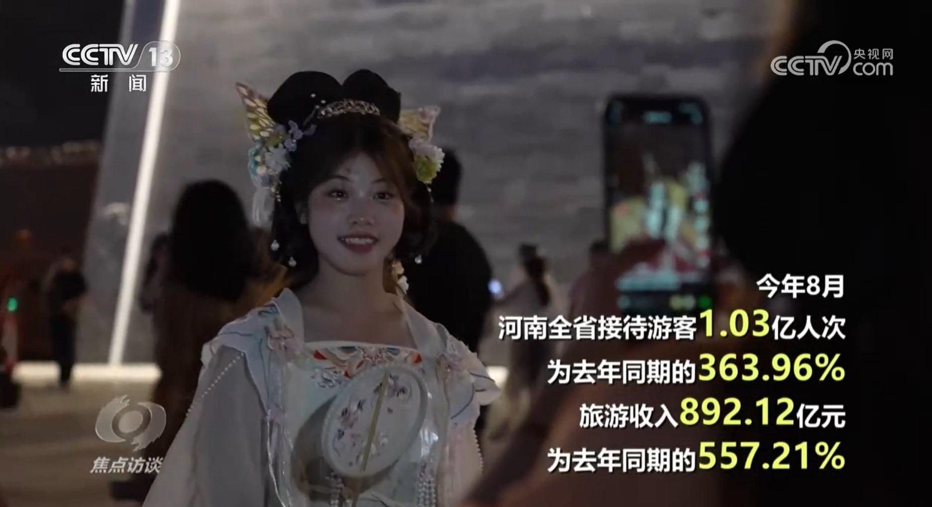 近年來,河南深入實施“行走河南 讀懂中國”的文旅融合戰(zhàn)略,制定全省“十四五”文化旅游融合發(fā)展規(guī)劃,打造40條精品研學線路,建成研學旅行基地277個,遴選發(fā)布100個網(wǎng)紅景區(qū),制定100多項文旅惠民助企政策。今年8月,河南全省接待游客1.03億人次,為去年同期的363.96%,旅游收入892.12億元,為去年同期的557.21%。當?shù)匾矊猿謩?chuàng)意驅(qū)動、科技賦能、跨界融合、移動傳播的新思路,繼續(xù)探索文旅融合發(fā)展的新模式。
