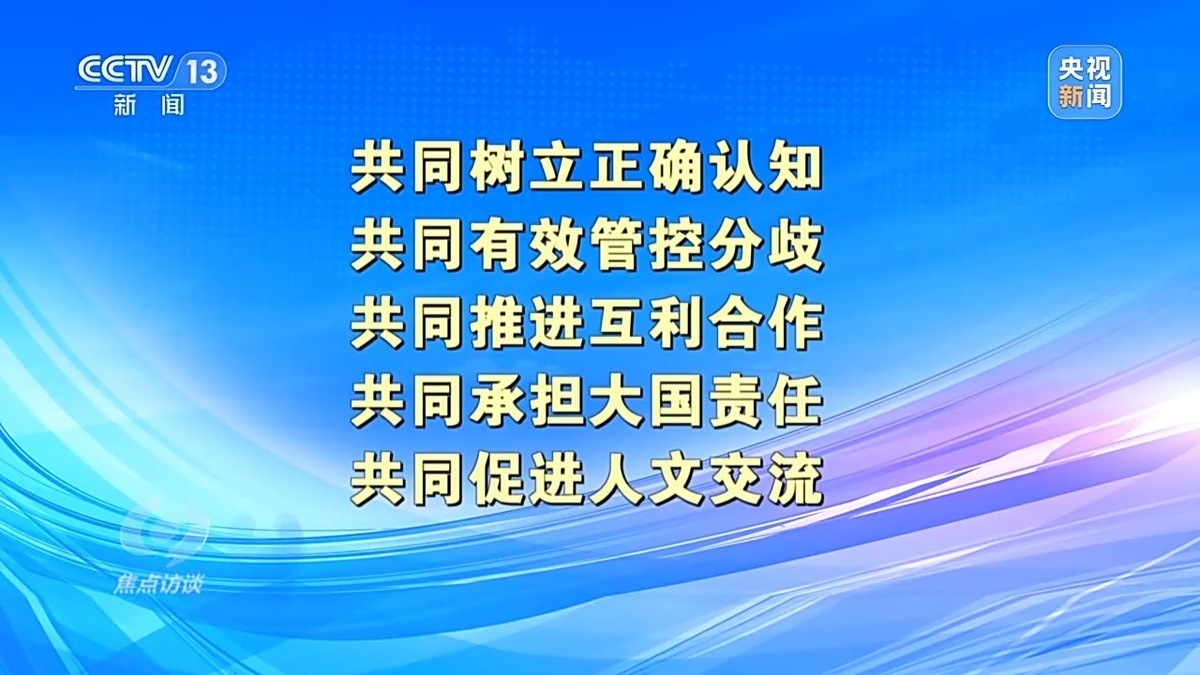 中國人民大學(xué)國際關(guān)系學(xué)院教授 刁大明:現(xiàn)在看舊金山這次會晤本身,中方非常清晰地從負(fù)責(zé)任大國角度出發(fā),從對歷史、對人民、對世界角度出發(fā),提出了一個中美兩國正確相處之道。“五個共同”是中國提出的一個正確相處之道,也是中國從負(fù)責(zé)任角度出發(fā),為穩(wěn)定中美關(guān)系,為更多增進全球福祉提出中國方案。