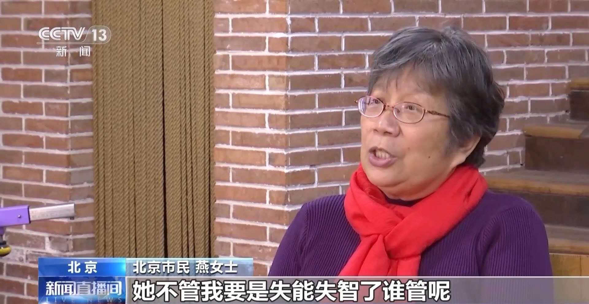 北京市民 燕女士:只是這么一說,她是同意的,但是具體的就沒談,因為人家也是上班的,工作也比較忙,一切事都是由她管,她不管,我要是失能失智了,誰管呢?我也沒地兒找去,我認(rèn)識的人范圍比較小,所以只有這樣。