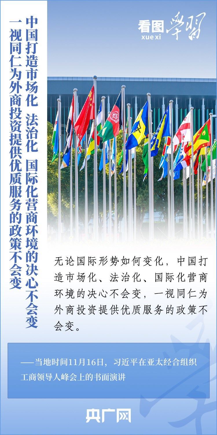 當(dāng)?shù)貢r(shí)間11月16日,國家主席習(xí)近平應(yīng)邀出席亞太經(jīng)合組織工商領(lǐng)導(dǎo)人峰會(huì)并發(fā)表書面演講。習(xí)主席深刻總結(jié)了亞太經(jīng)濟(jì)合作30年來非凡成就和啟示,對(duì)亞太合作下一個(gè)30年將走向何方這一新的時(shí)代之問提出中國答案,重申“中國打造市場(chǎng)化、法治化、國際化營商環(huán)境的決心不會(huì)變,一視同仁為外商投資提供優(yōu)質(zhì)服務(wù)的政策不會(huì)變”,向全球工商界發(fā)出邀請(qǐng),歡迎“積極參與中國式現(xiàn)代化進(jìn)程,共享中國高質(zhì)量發(fā)展帶來的巨大機(jī)遇!”一起來學(xué)習(xí)。