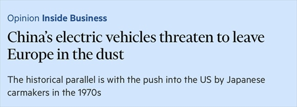 英國(guó)《金融時(shí)報(bào)》評(píng)價(jià),中國(guó)新能源汽車(chē)可能讓歐洲望塵莫及,其出口的增長(zhǎng)速度比分析師此前預(yù)期的要快得多。