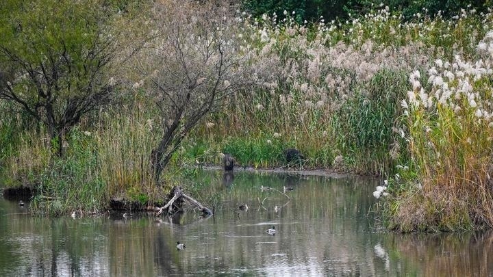 野豬和水鳥生活在長(zhǎng)江新濟(jì)洲(11月13日攝)。記者 季春鵬 攝