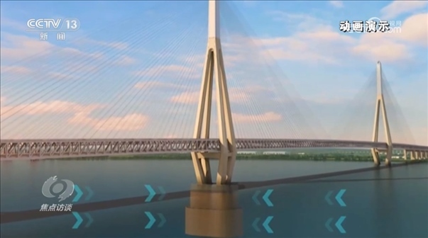 鄭清剛:“鐵路一側(cè)的荷載比公路一側(cè)要重8.6噸,就是每延米有8.6噸,就像兩個人抬東西,比如一頭重量大了的話,就會發(fā)生一頭高一頭低的情況。我們是通過一些結(jié)構(gòu)上的辦法,采用不同強(qiáng)度的斜拉索來匹配這個受力。”