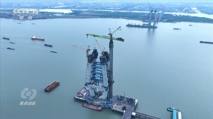 央視網(wǎng)消息(焦點訪談):近些年來,中國在多個領(lǐng)域創(chuàng)造了大量的世界之最。這一個個的 “世界首次”“世界第一”深刻地改變了中國,也令世界驚嘆。從今天起《焦點訪談》欄目推出“登攀”系列節(jié)目,我們來看一看中國奇跡誕生背后的故事?!胺晟介_路、遇水架橋”,這是中國基建人的日常,他們不斷突破,創(chuàng)造了一個個登頂世界之最的基建名場面。今天我們要講的是一座修建當(dāng)中的長江大橋——位于江蘇常州和泰州之間的常泰長江大橋,作為世界上在建的最大跨度的公鐵兩用斜拉橋,這座大橋在建設(shè)的過程當(dāng)中遇到了很多困難,也頻頻上演著突破和創(chuàng)新。