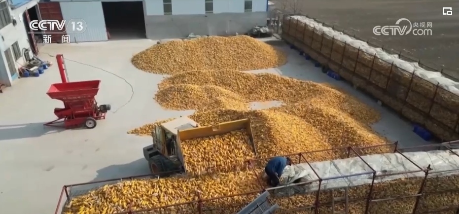“小雪”節(jié)氣過后,山東濟南平陰縣的秋收接近尾聲,又到了儲糧的時節(jié)。當?shù)馗鱾€村子里家家戶戶的“苞米樓子”拔地而起,成為農民的儲糧“神器”。這兩天,平陰縣孝直鎮(zhèn)中聯(lián)村種糧大戶李明海開動鏟車,將一穗穗玉米棒運轉到儲糧倉里,遠遠望去一片金黃,上百萬斤玉米塞得滿滿當當。