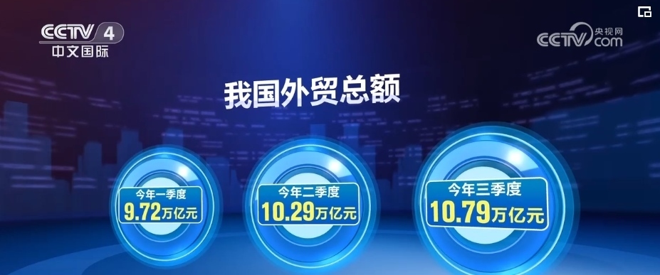 2023年一、二、三季度,我國(guó)外貿(mào)總額分別為9.72萬(wàn)億元、10.29萬(wàn)億元和10.79萬(wàn)億元,外貿(mào)規(guī)模逐季抬升。
