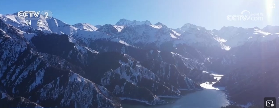 初冬季節(jié),新疆阜康天山天池景區(qū)銀裝素裹。湛藍的天空下,雪山與雪嶺云杉交相呼應(yīng),波光粼粼的湖面映照著皚皚白雪,游客們宛如置身冰雪世界。