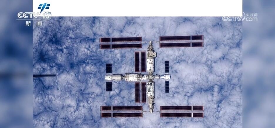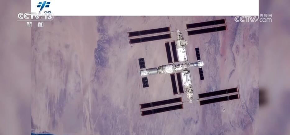 撤離后,神舟十六號(hào)乘組在返回地面前,航天員手持高清相機(jī)通過飛船繞飛拍攝了空間站組合體。這是在軌首次獲取的以地球?yàn)楸尘暗闹袊臻g站全貌圖像,也是第一組反映空間站全構(gòu)型的工作照。